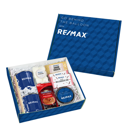 S'more Cocoa! Isn't that what we all want? This new iteration of our best selling set now includes a Endless Summer® portable campfire to encourage your gift recipients to get outside and make memories! This set includes a pair of 16 oz. Speckled Camping Mugs, 2 Packets of Ghirardelli® Double Chocolate Hot Chocolate Mix, 4 Graham Cracker Sheets, 4 Marshmallows, 2 one ounce Belgian Milk Chocolate Bars, and 2 Toasting Sticks. Add a logo to our stock design shown, or get creative and completely customize everything! Box is made of sturdy material.