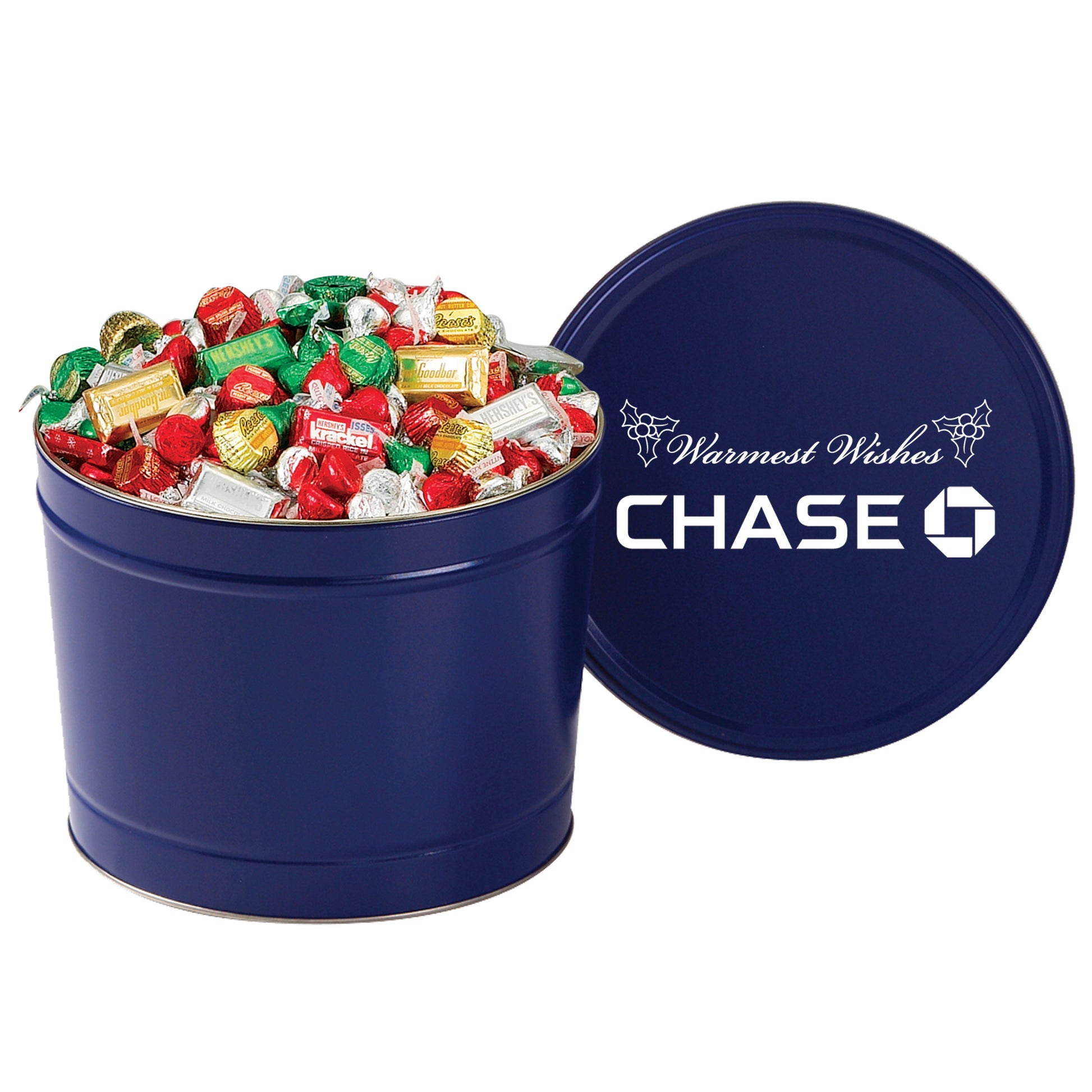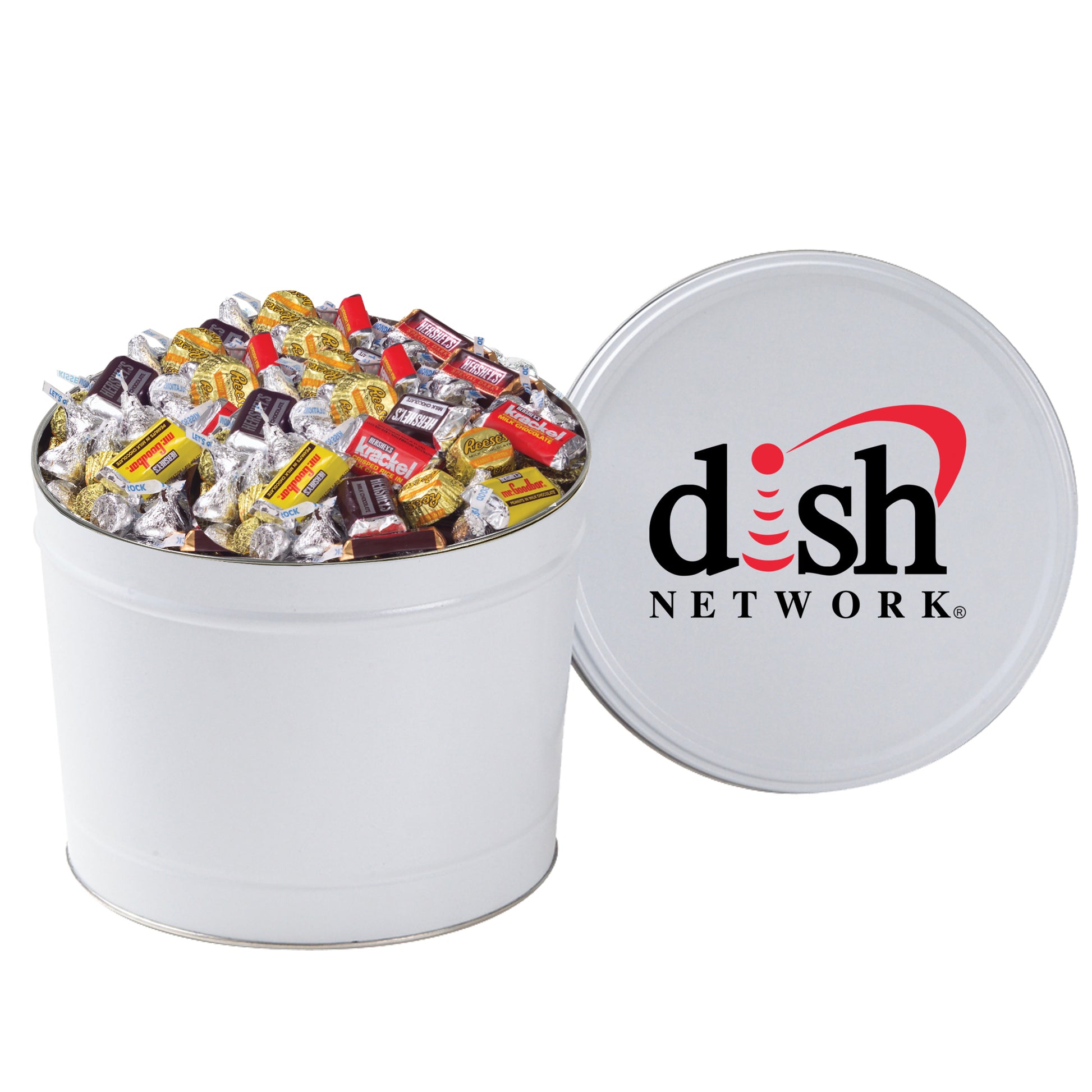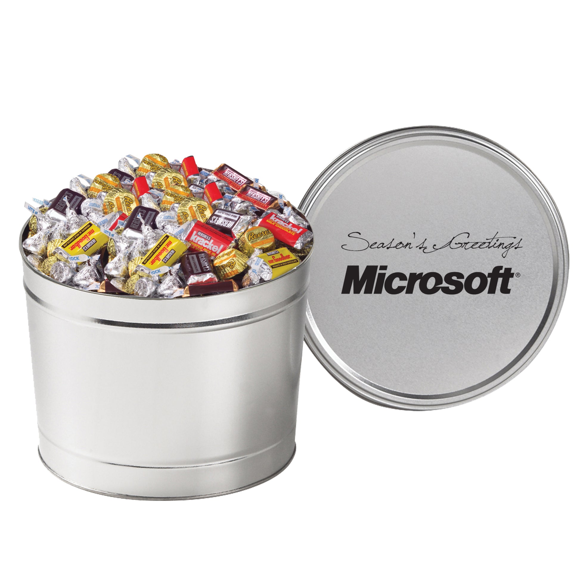 Our 2 Gallon Tin is a versatile gift that’s as impressive as it is customizable. Choose from a delicious selection of Hershey’s classics, indulgent Lindt truffles, or order it empty to fill with your own favorites. Each tin comes standard with a bold 1-color direct imprint on the lid, but you can also upgrade to full-color printing and add custom artwork to the body for maximum impact. Perfect for corporate gifting, events, or personal celebrations, this generous tin delivers both flavor and style.