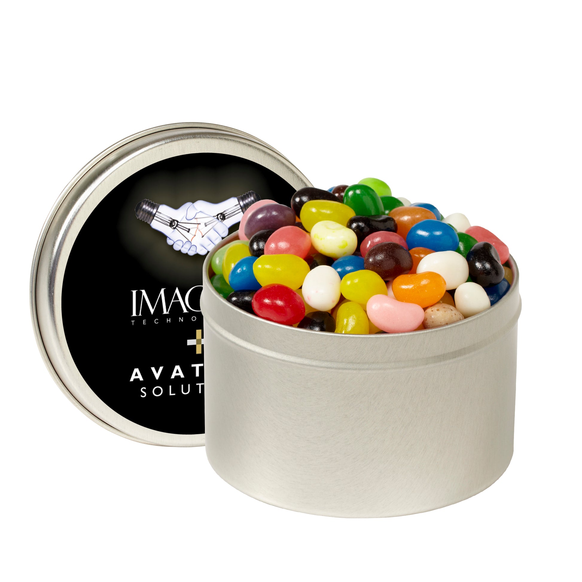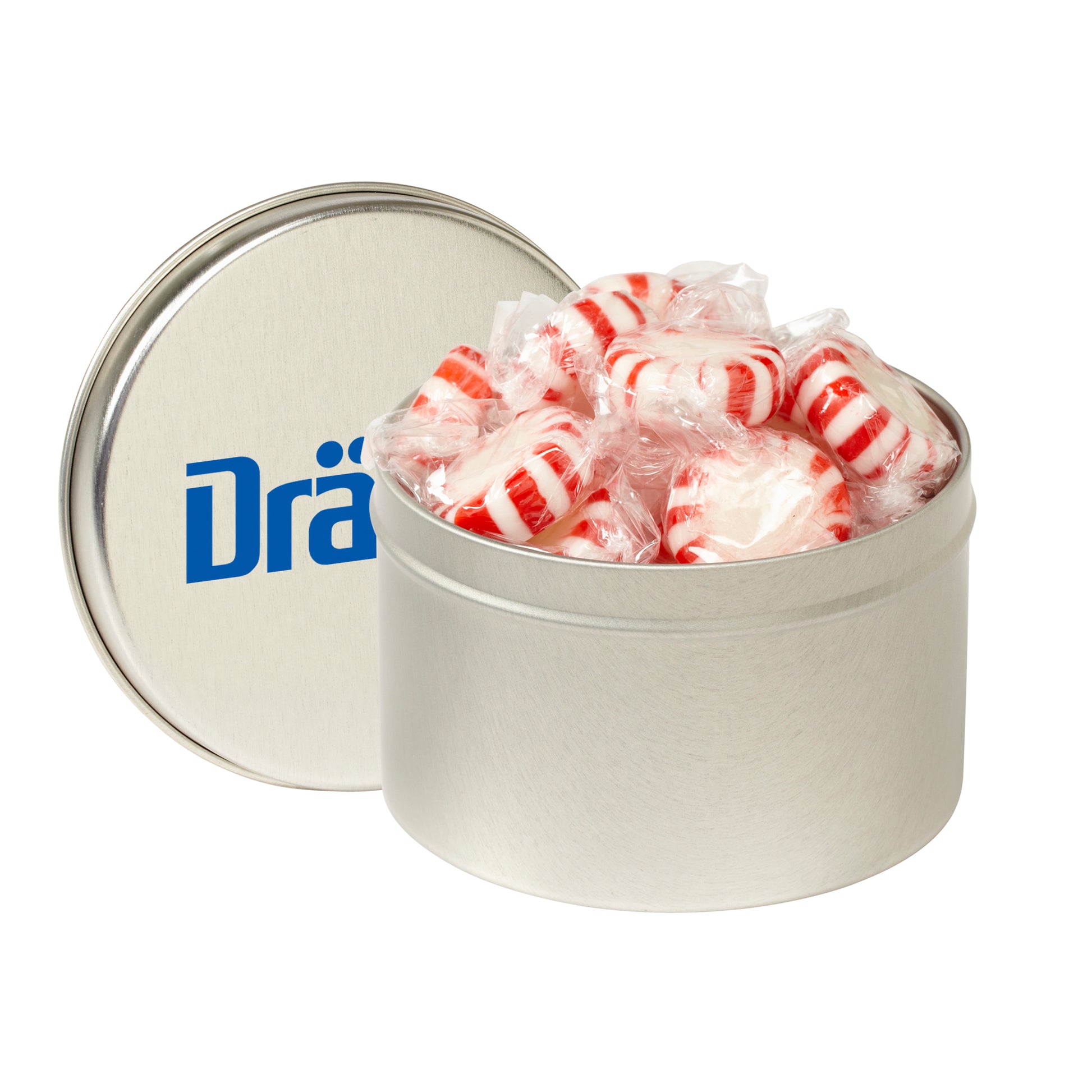 A compact keepsake tin filled with classic candies or nuts.