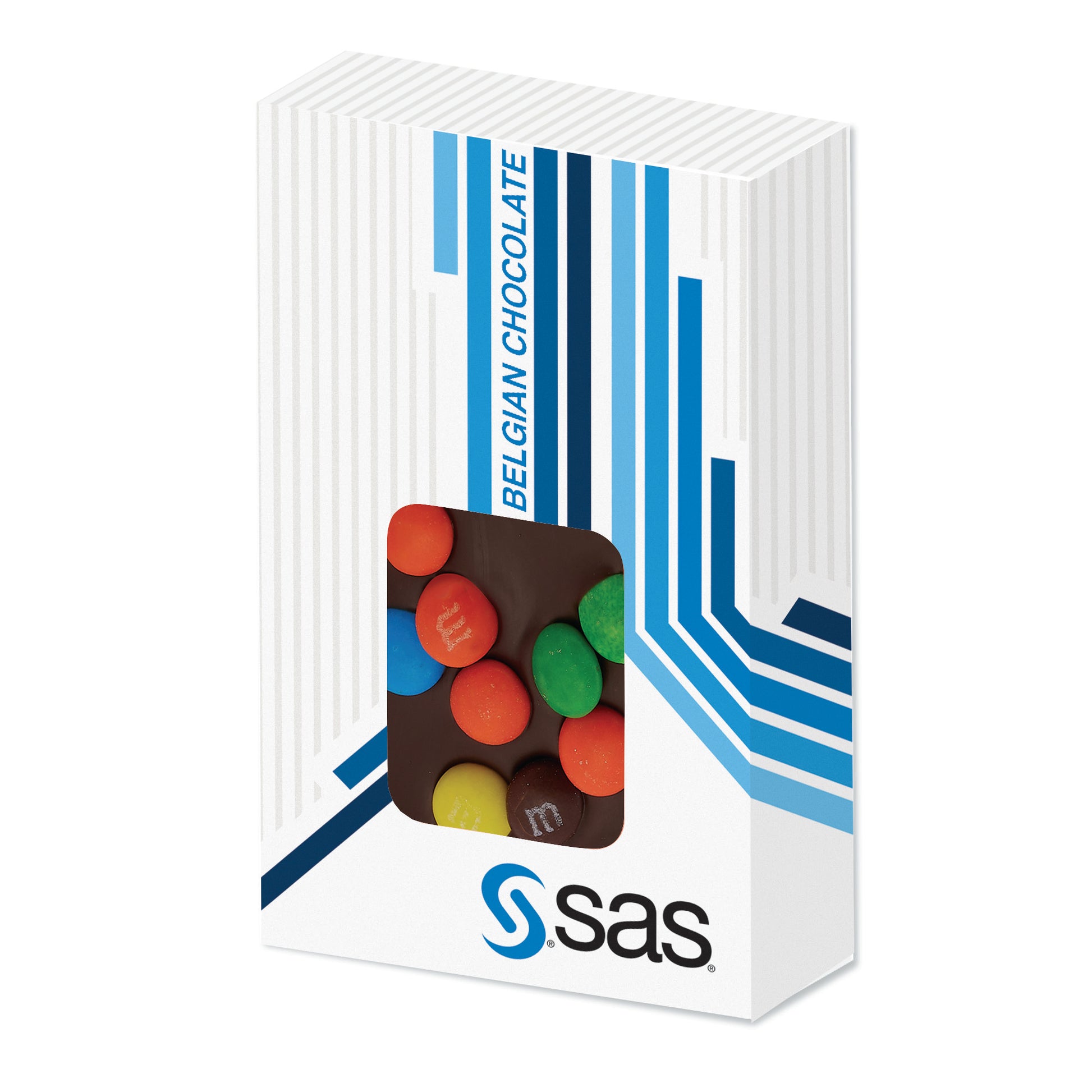 These 1 ounce Belgian chocolate bars come inside a window box and have the sweetest toppings. Add a logo to one of our stock designs shown or create your own artwork.