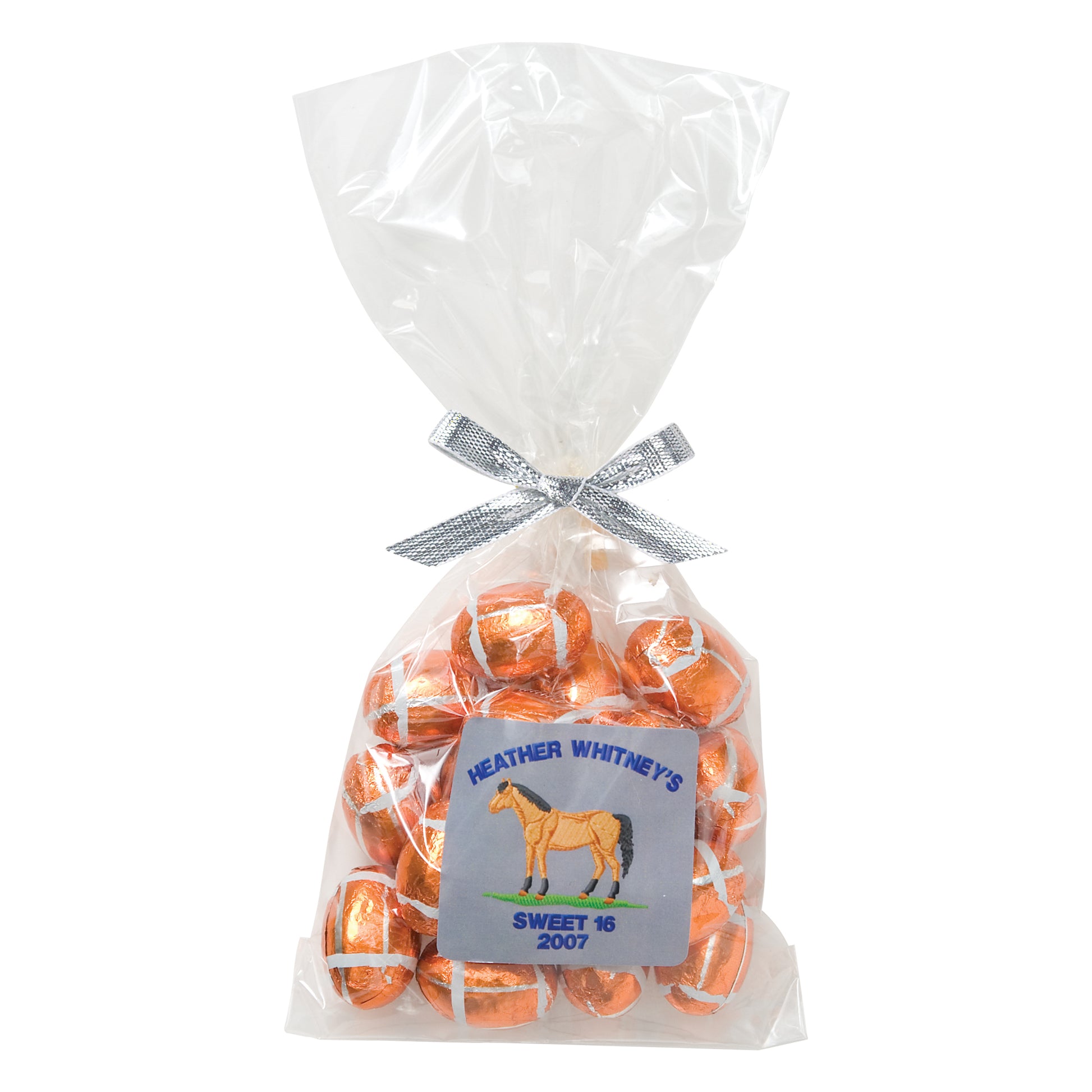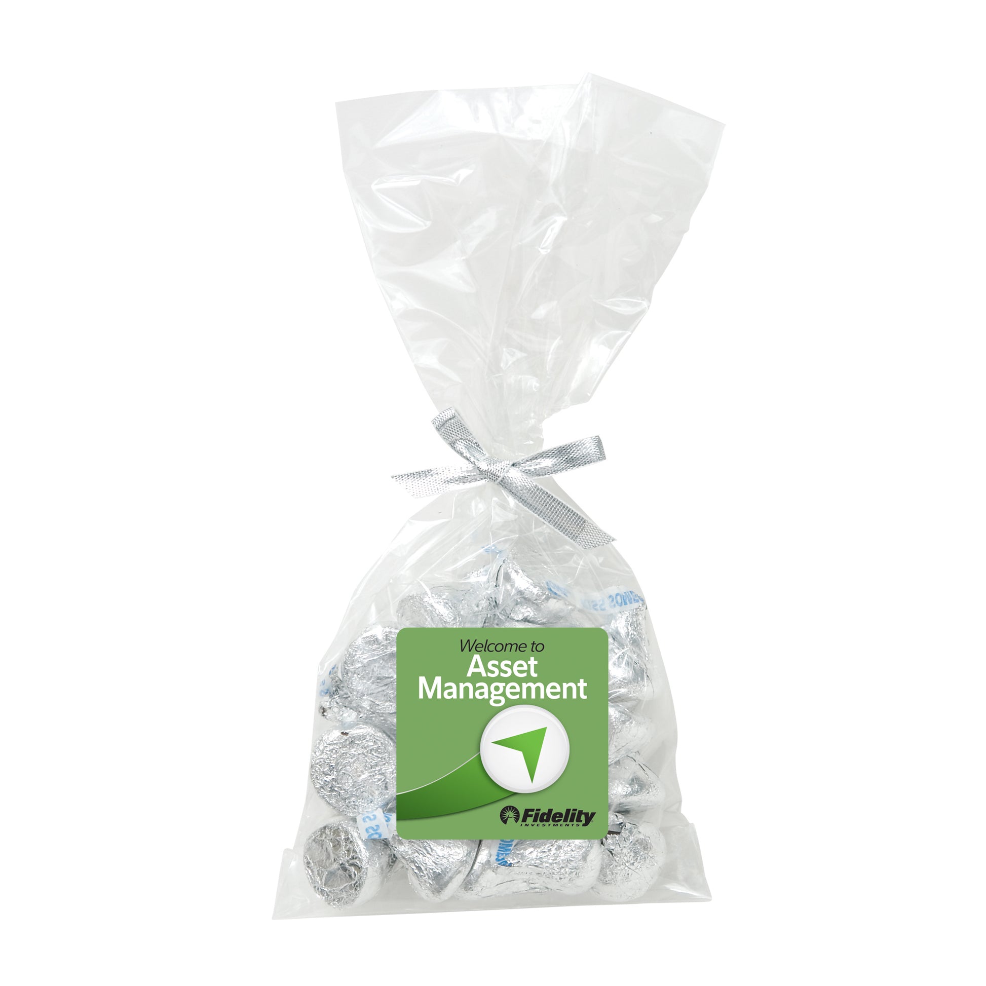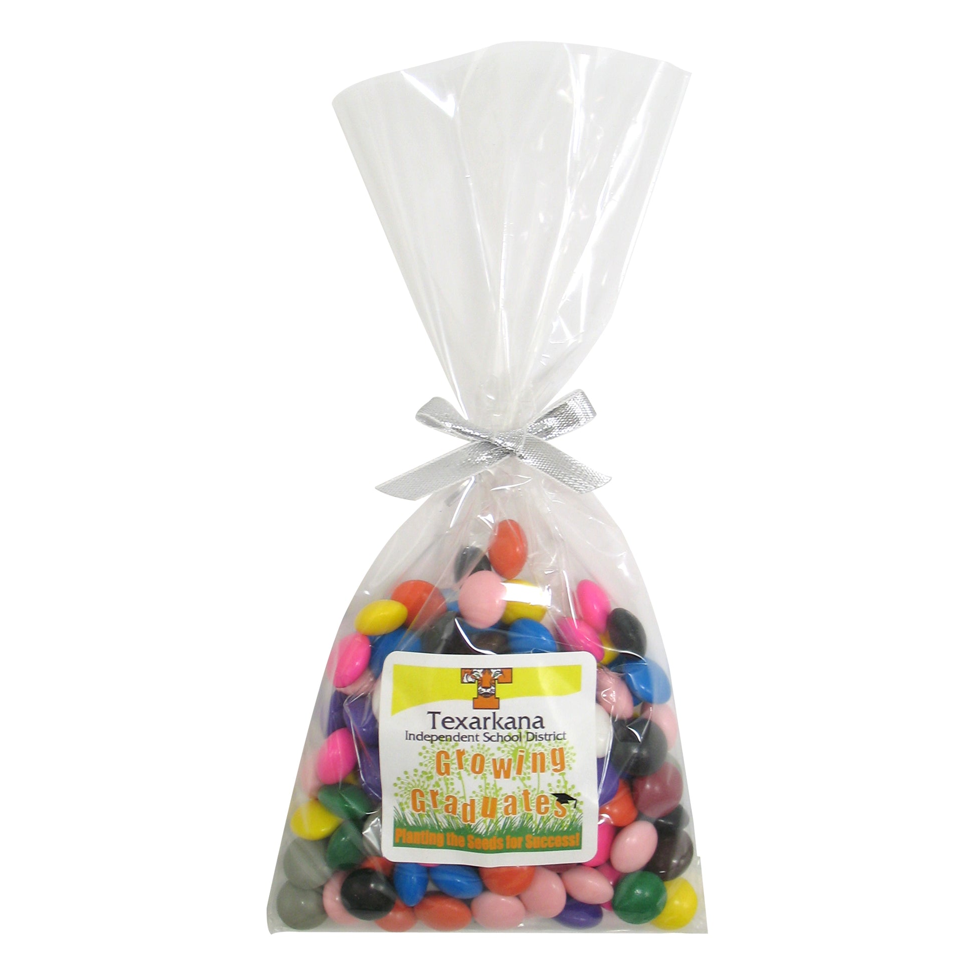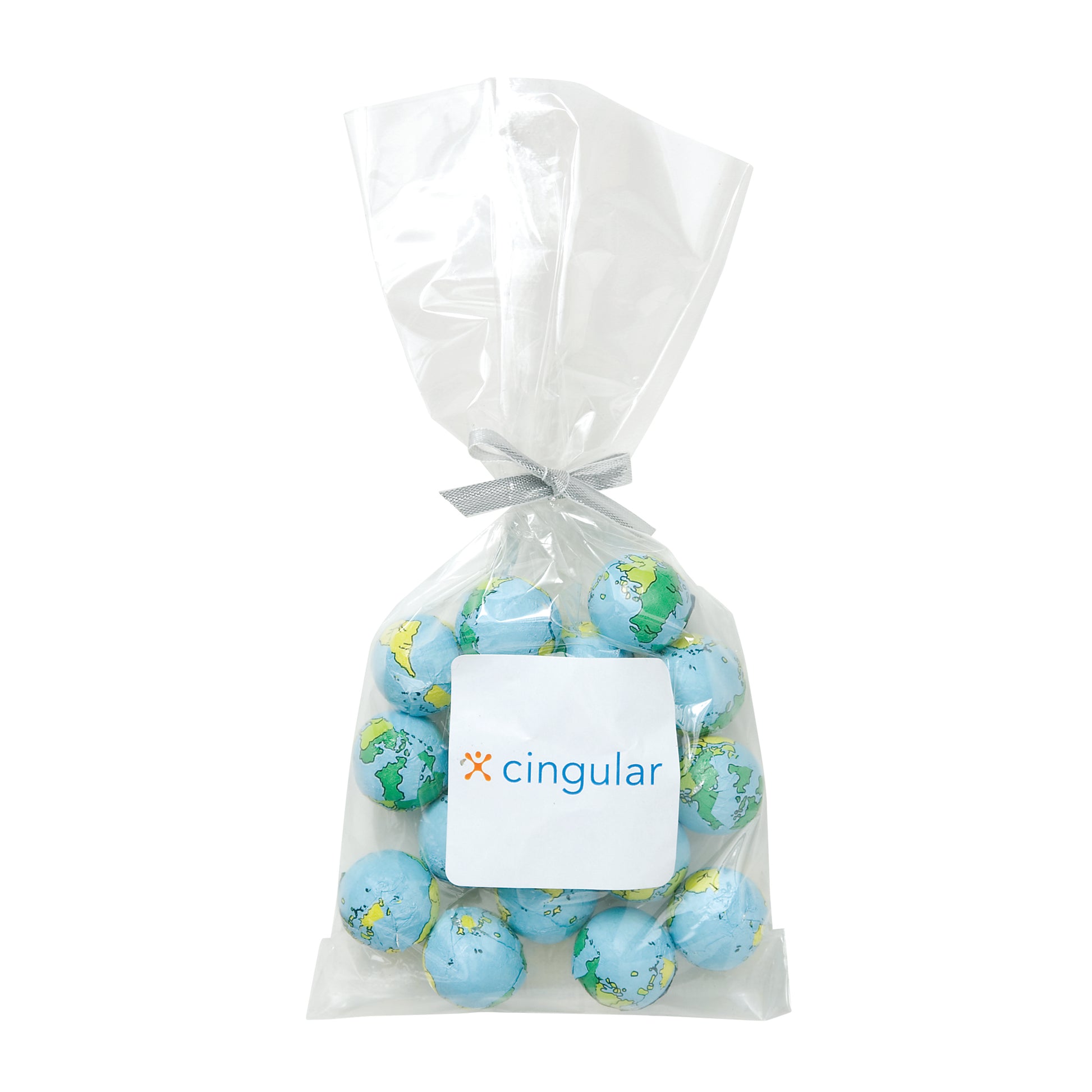 The perfect party favor or office giveaway! These clear bags are closed with your choice of silver, gold, or red twist ties. (Mug not included).