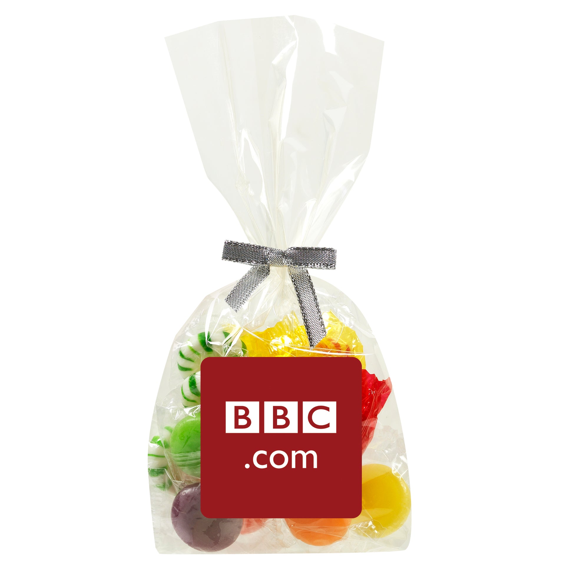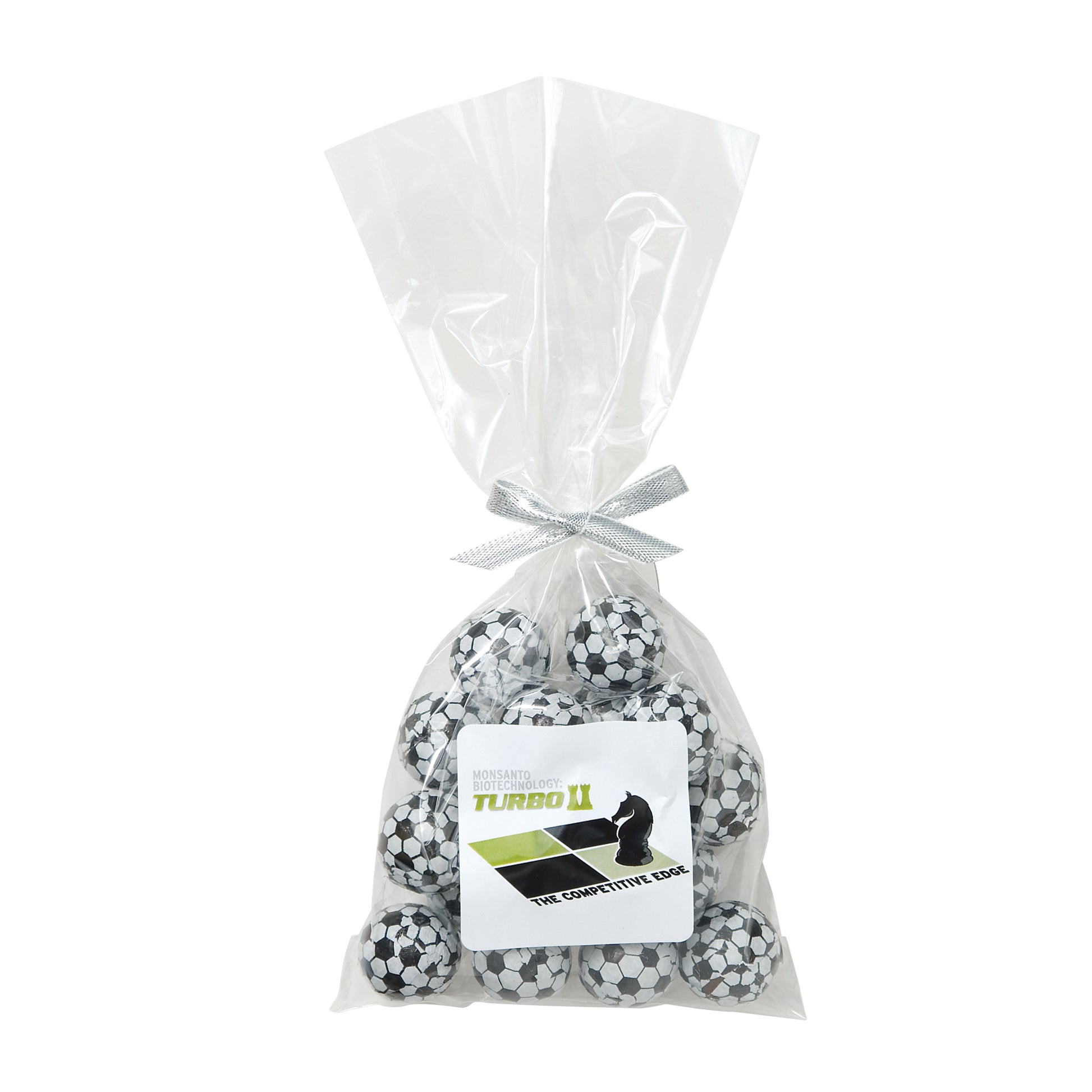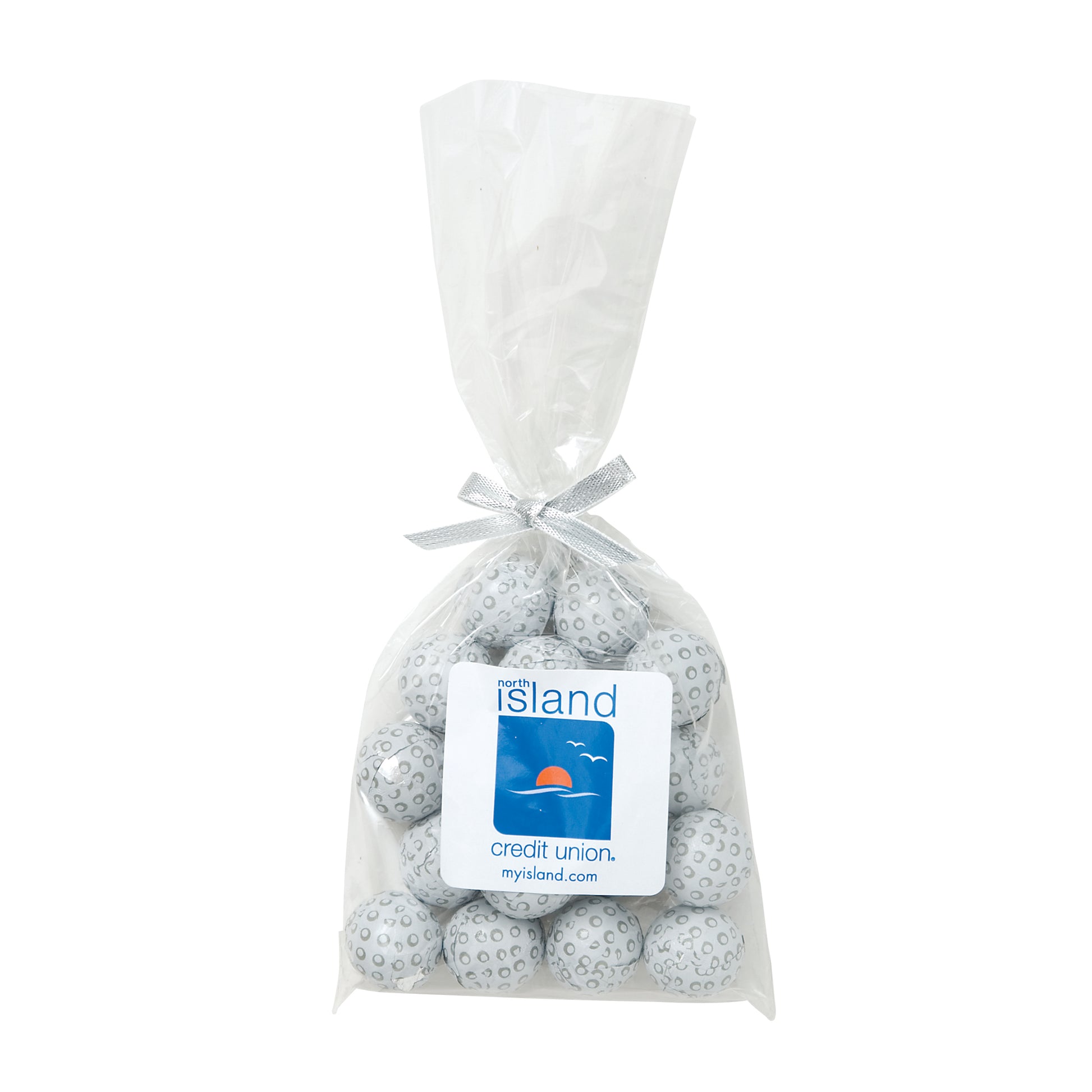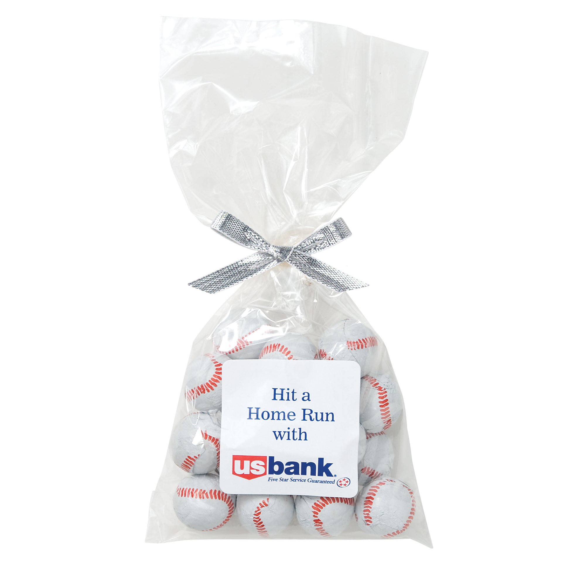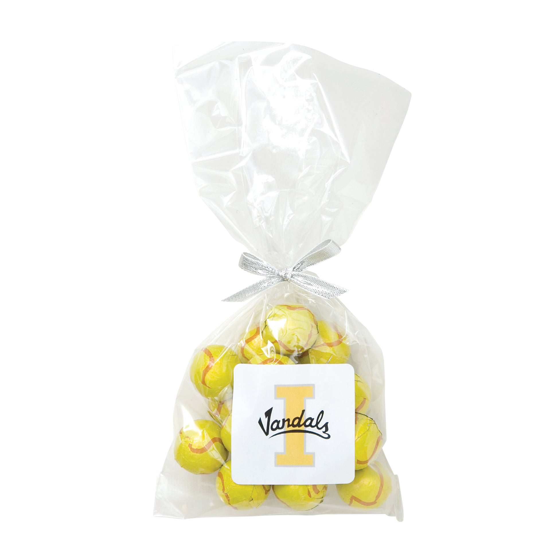 The perfect party favor or office giveaway! These clear bags are closed with your choice of silver, gold, or red twist ties. (Mug not included).