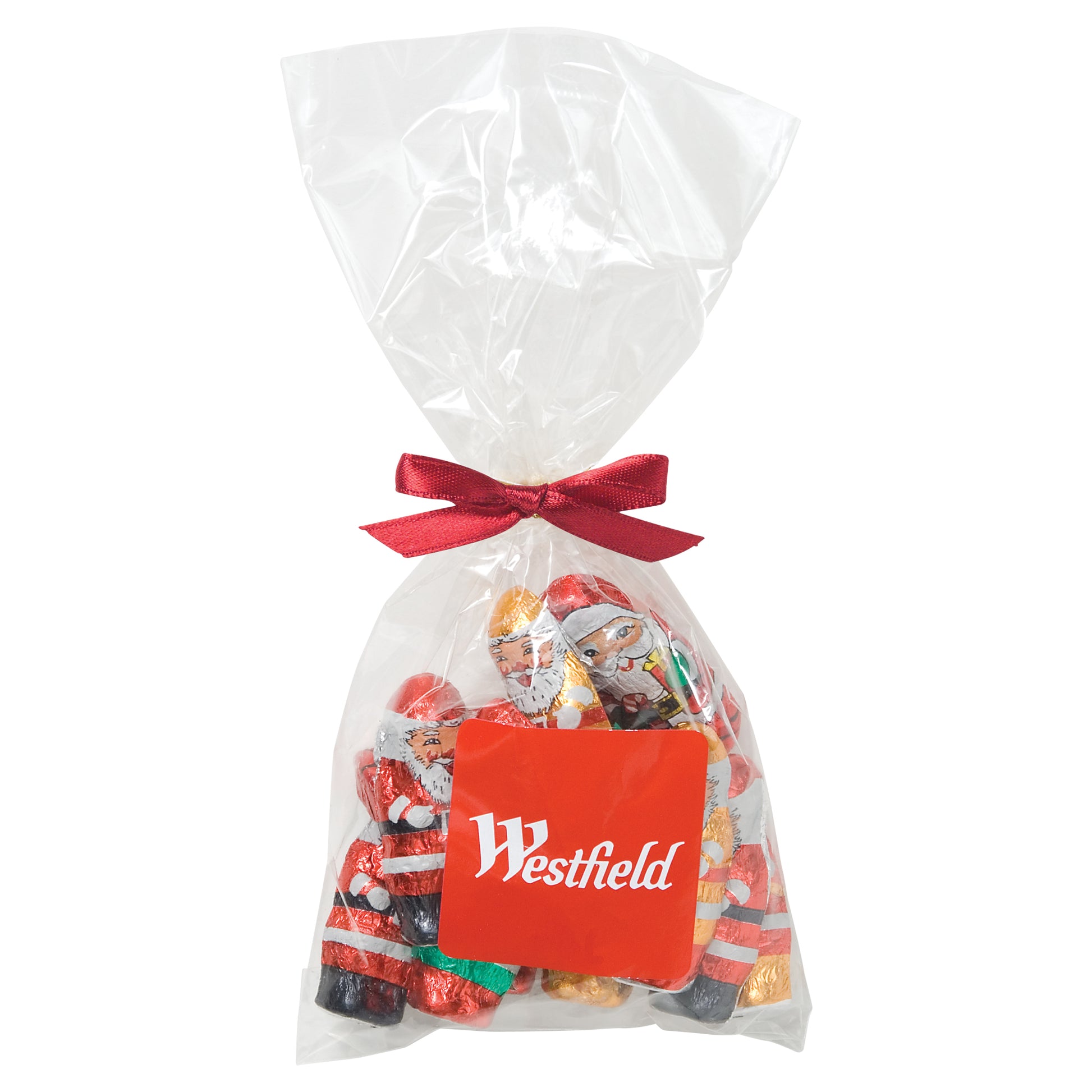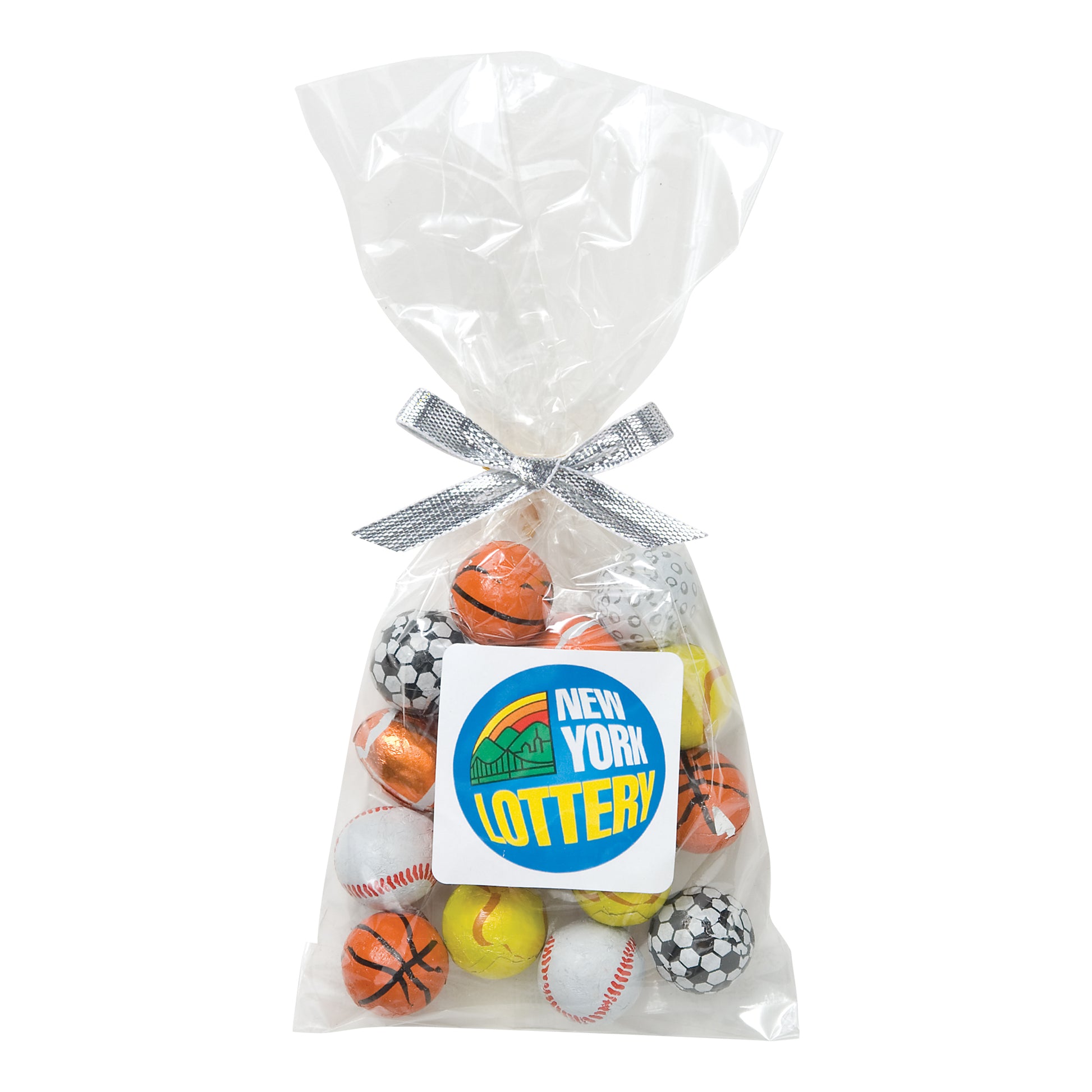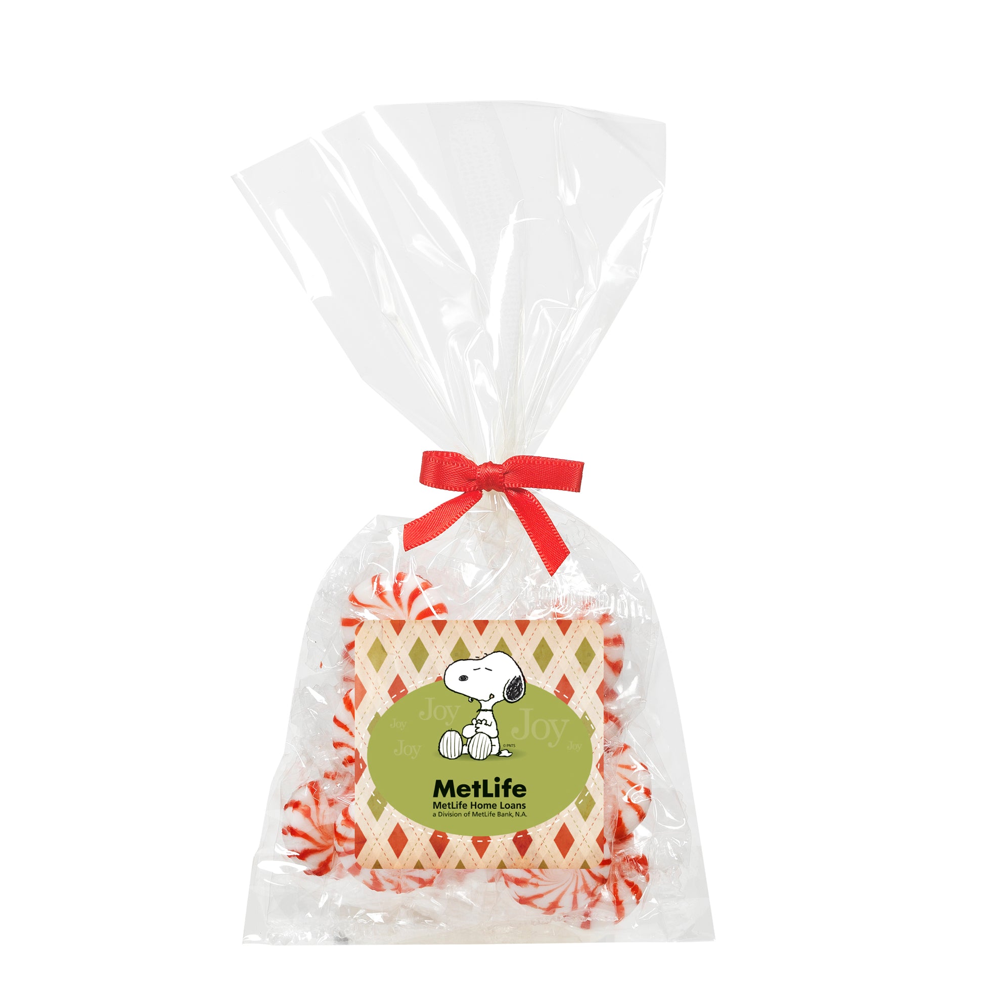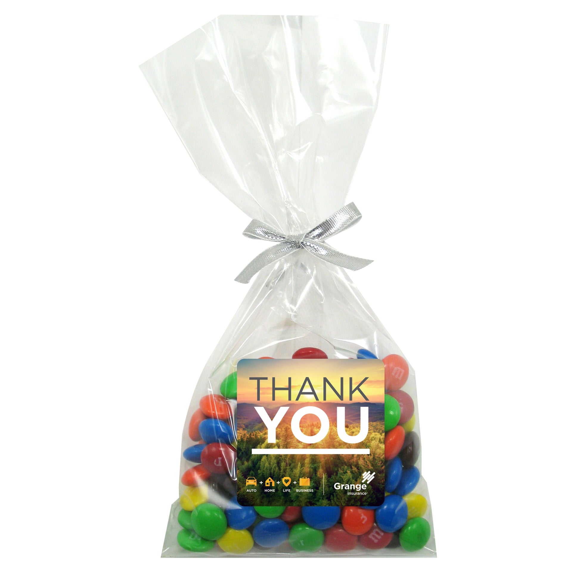 The perfect party favor or office giveaway! These clear bags are closed with your choice of silver, gold, or red twist ties. (Mug not included).