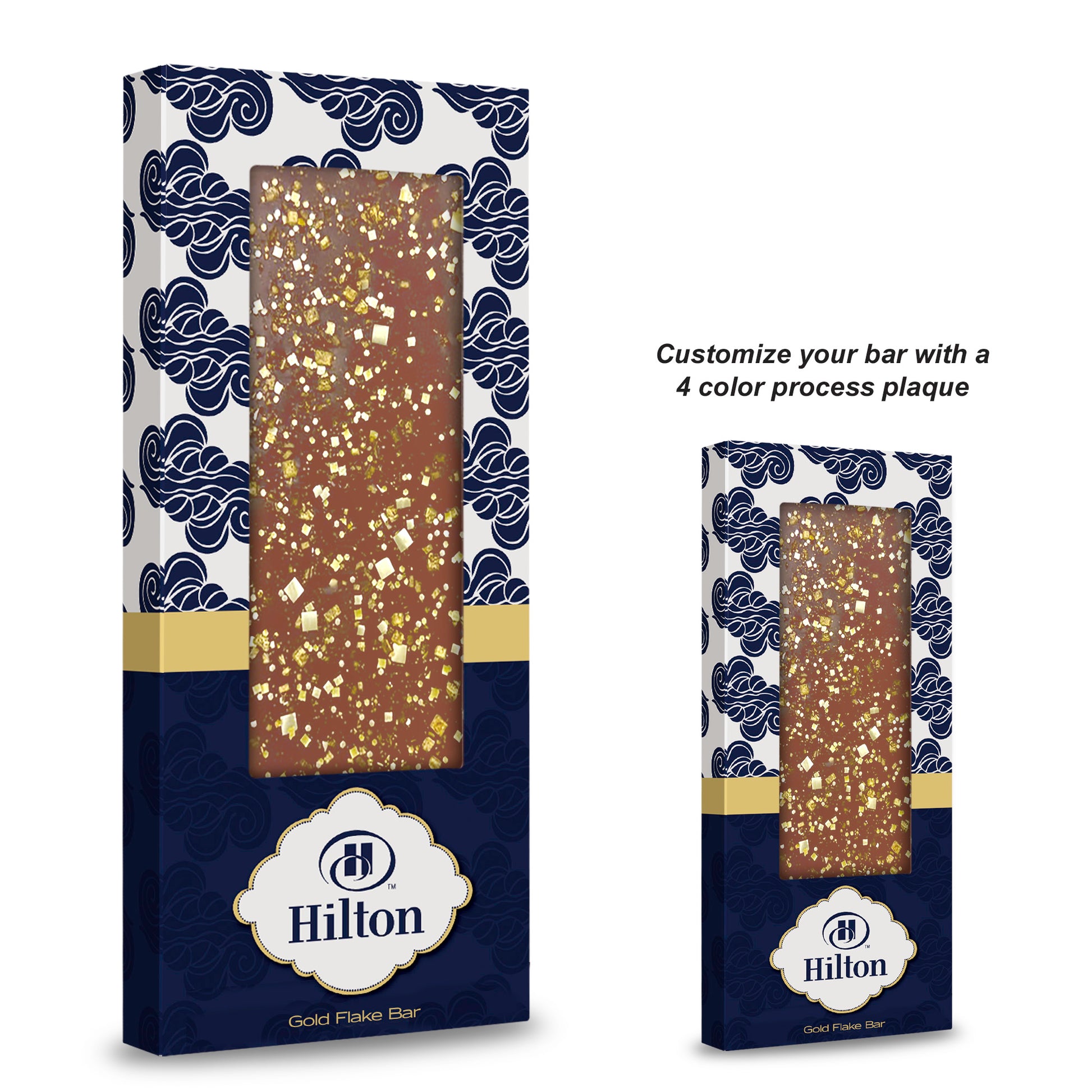 Offer a luxe moment of sweetness with our 3.5 oz Belgian Chocolate Bar Box, elegantly garnished with decadent toppings, including crushed Oreos, toffee bits, and even Corporate Color™ nonpareil sprinkles to reflect your brand or theme.