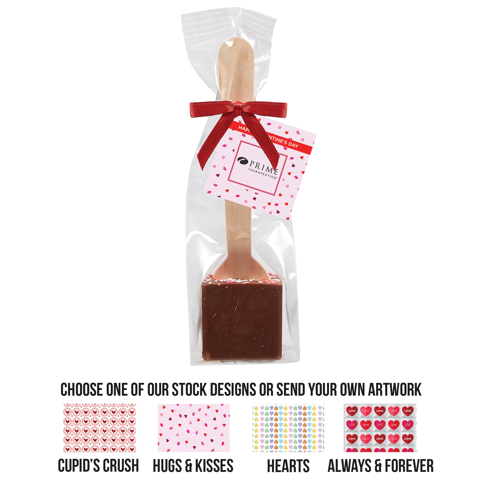 Delight your audience with our Hot Chocolate on a Spoon in Favor Bag, featuring a luxurious Belgian chocolate spoon—choose from decadent varieties such as Dark Chocolate with Peppermint, Milk Chocolate with Marshmallows, White Chocolate, Salted Caramel, Mexican Hot Chocolate, or classic Milk Chocolate—all elegantly packaged in a favor bag.