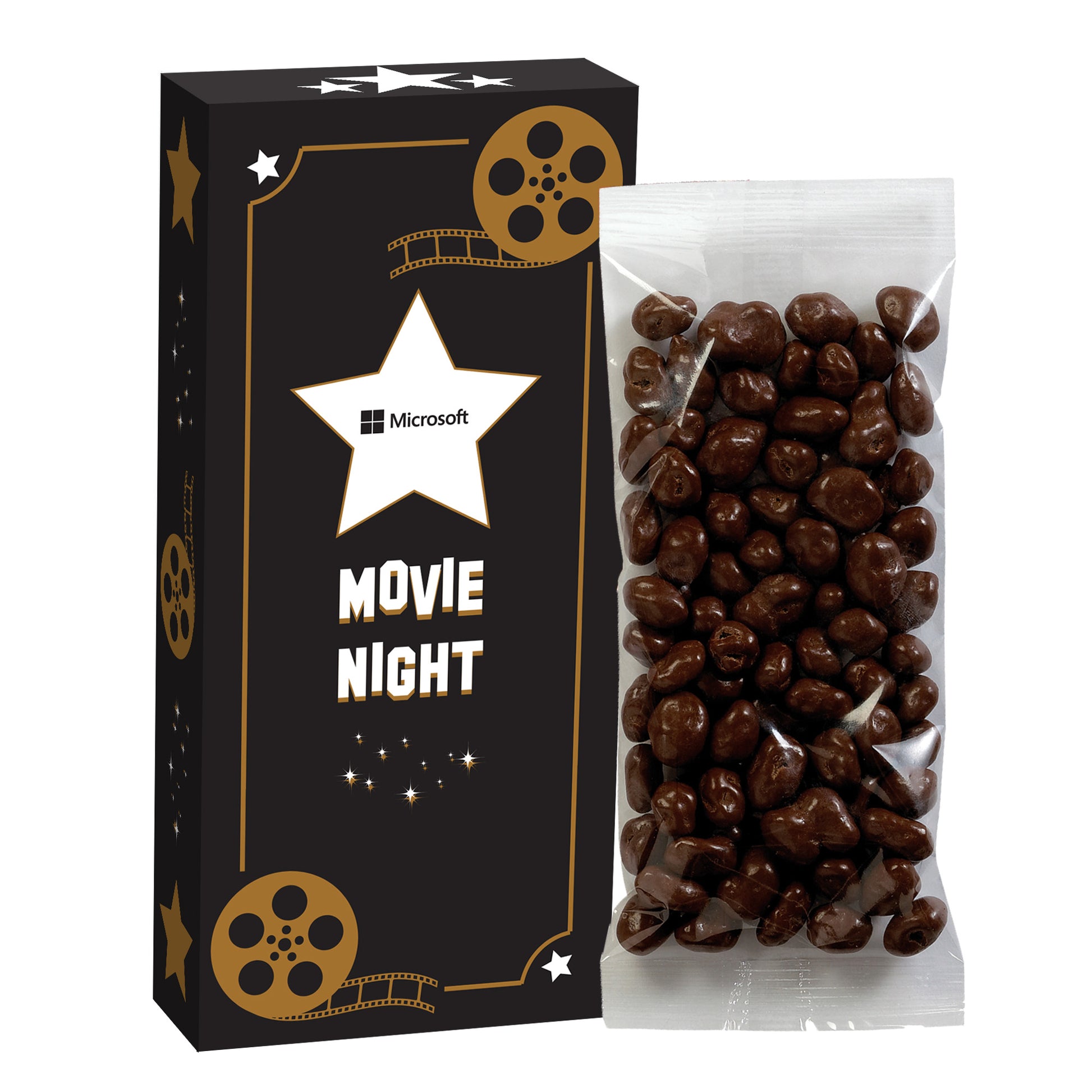 Make it a blockbuster event! These popular movie-themed boxes hold just the right amount of candy and snax! Add a logo to our stock design shown or create your own custom box.