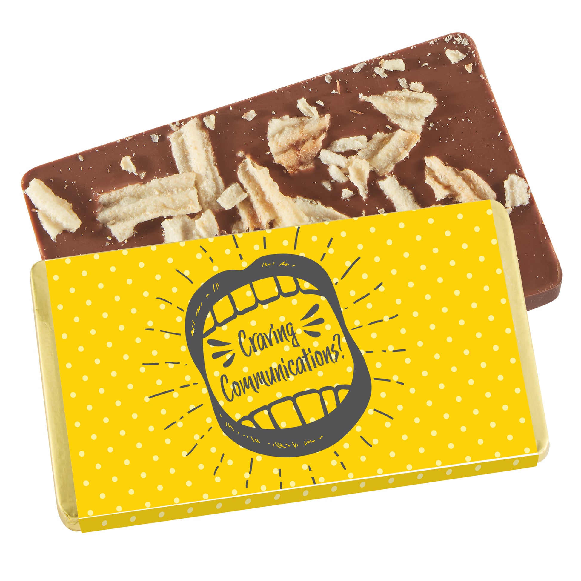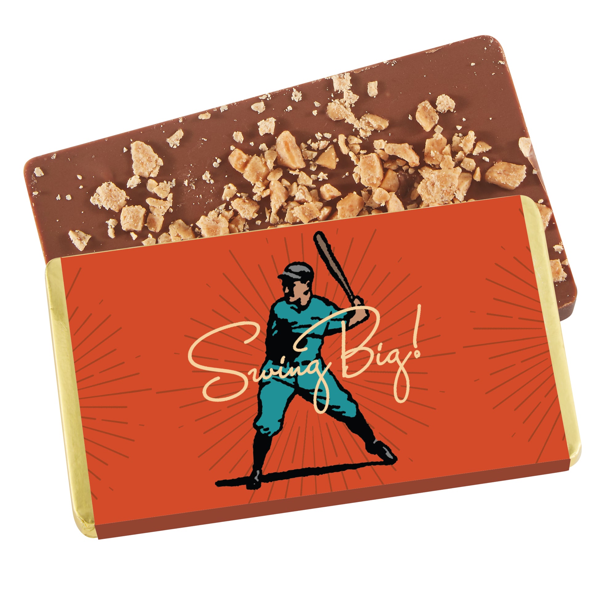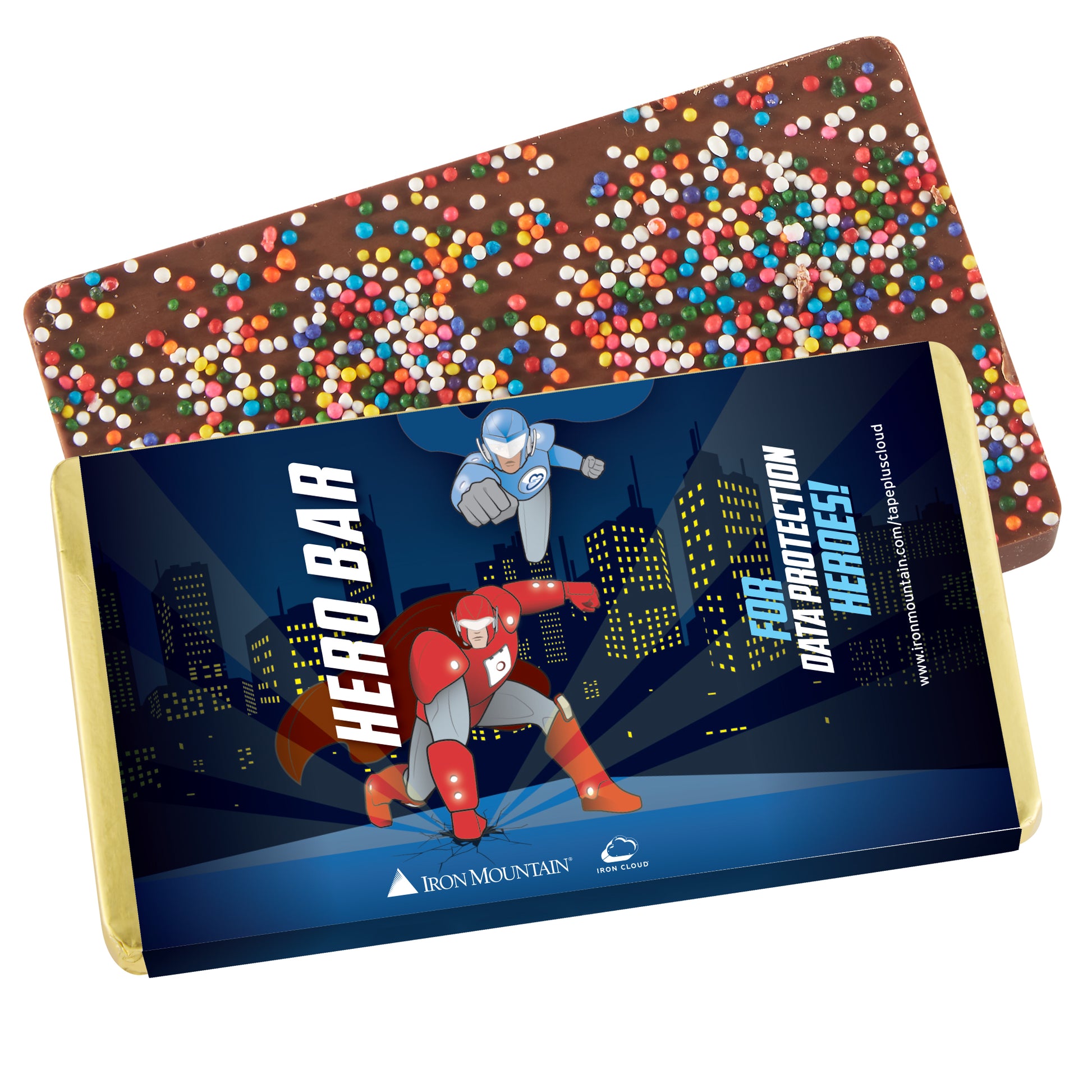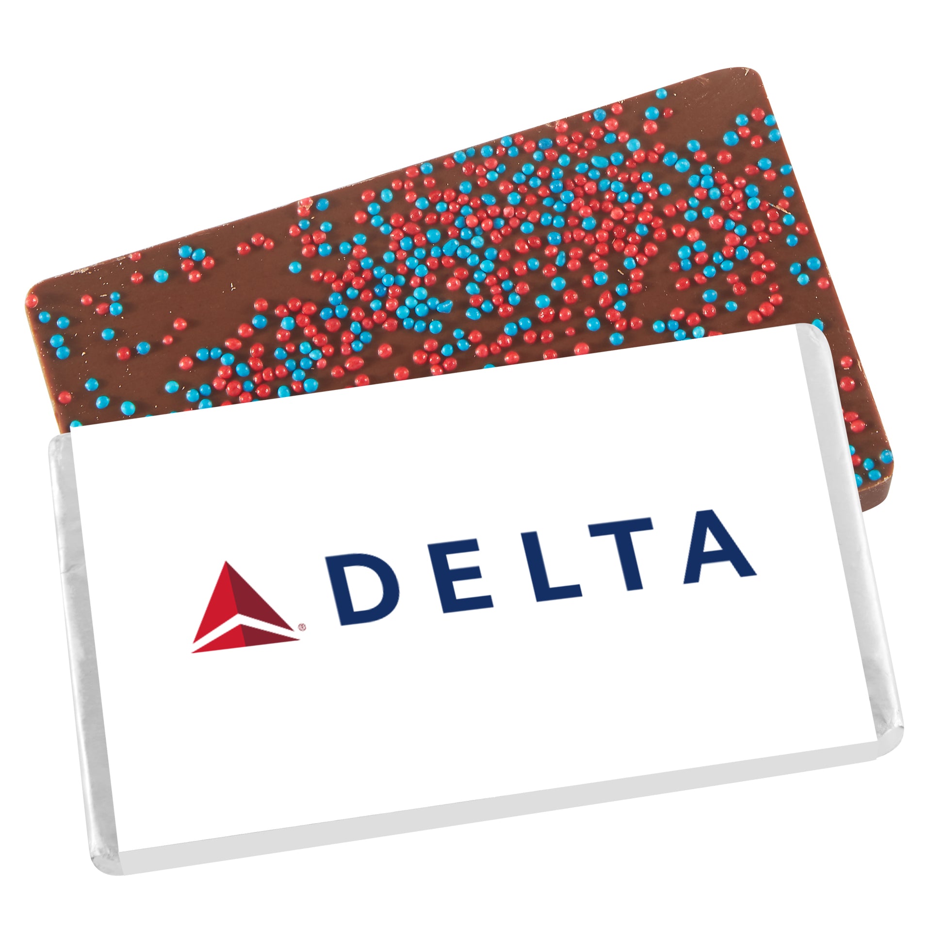 Make every moment a little more indulgent with our Belgian Chocolate Bar Collection—a stylish ensemble of foil-wrapped Belgian chocolate bars, perfect for gifting or elegant promotions. Choose from an array of playful toppings like festive nonpareil sprinkles, luxurious gold flakes, Mini M&M’s®, and more, all wrapped in gleaming foil for a timeless, premium feel. Each chocolate bar wrapper is fully customizable making these treats an irresistibly tasteful way to show appreciation and leave a lasting impression.