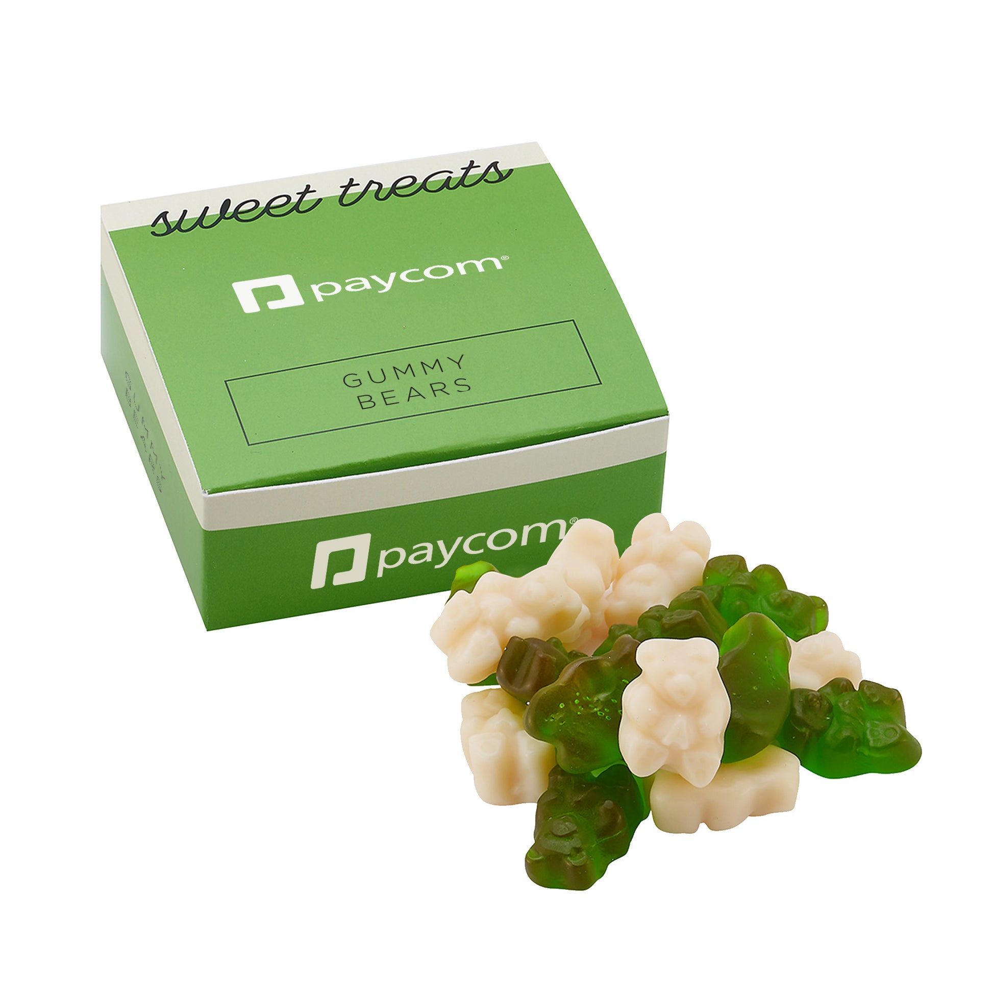This full color, custom box is packed with your choice of sweets and treats Add a logo to our stock box shown, or create our own custom box.