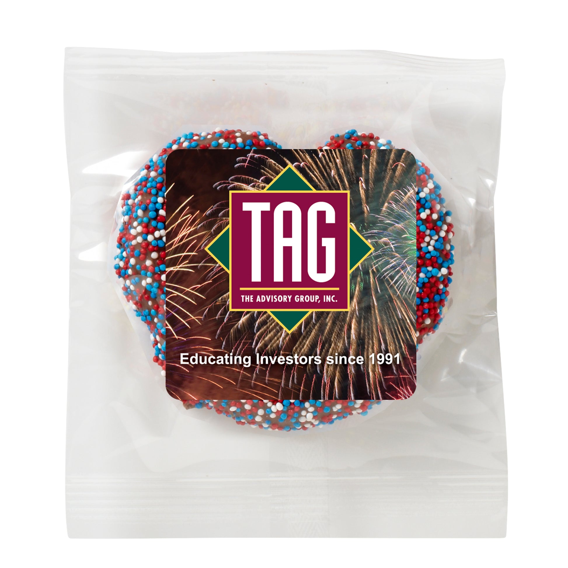 Elevate your snack lineup with the Chocolate Covered Pretzel Knot—a delightful twist on the classic pretzel, generously coated in rich chocolate and sprinkled with your choice of corporate-color™, rainbow, or holiday-themed nonpareil sprinkles for a burst of festive color or brand alignment