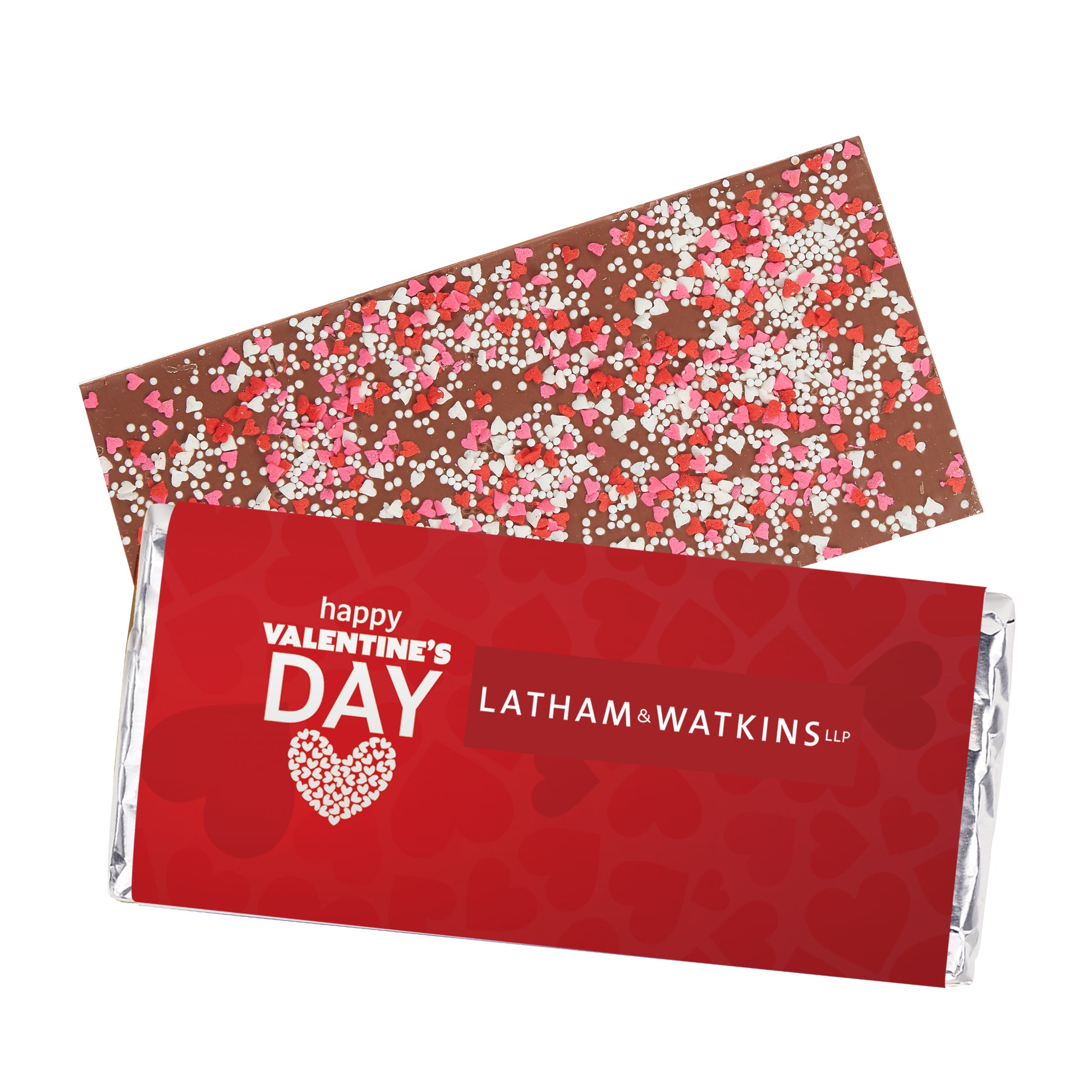 Make every moment a little more indulgent with our Belgian Chocolate Bar Collection—a stylish ensemble of foil-wrapped Belgian chocolate bars, perfect for gifting or elegant promotions. Choose from an array of playful toppings like festive nonpareil sprinkles, luxurious Gold Flakes, Mini M&M’s®, and more, all wrapped in gleaming foil for a timeless, premium feel. Each chocolate bar wrapper is fully customizable making these treats an irresistibly tasteful way to show appreciation and leave a lasting impression.